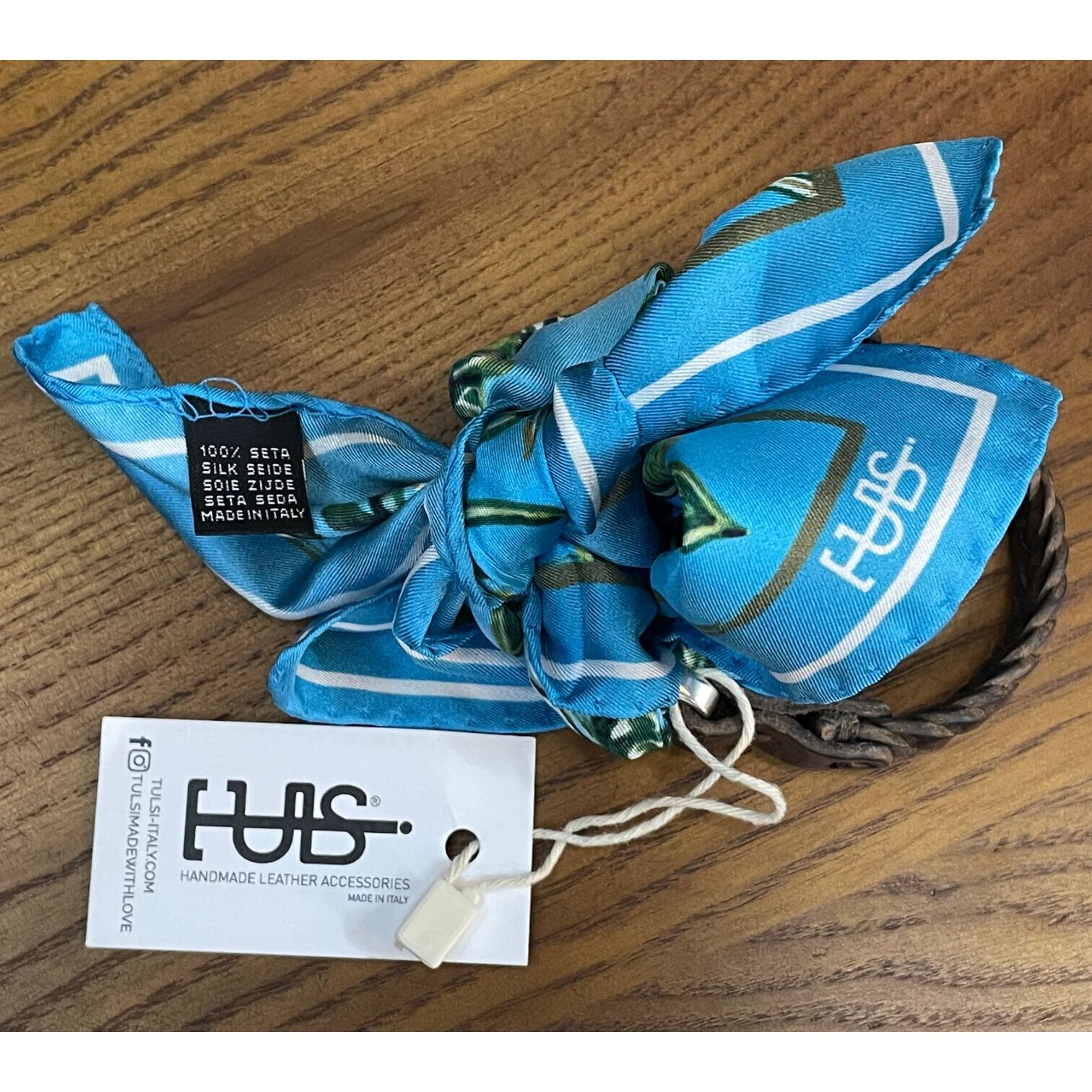 ★新品★ MADE IN ITALY製 TULSI POCHETTE シルクスカーフ付き ハンドメイドレザーブレスレット ブラック Fサイズ