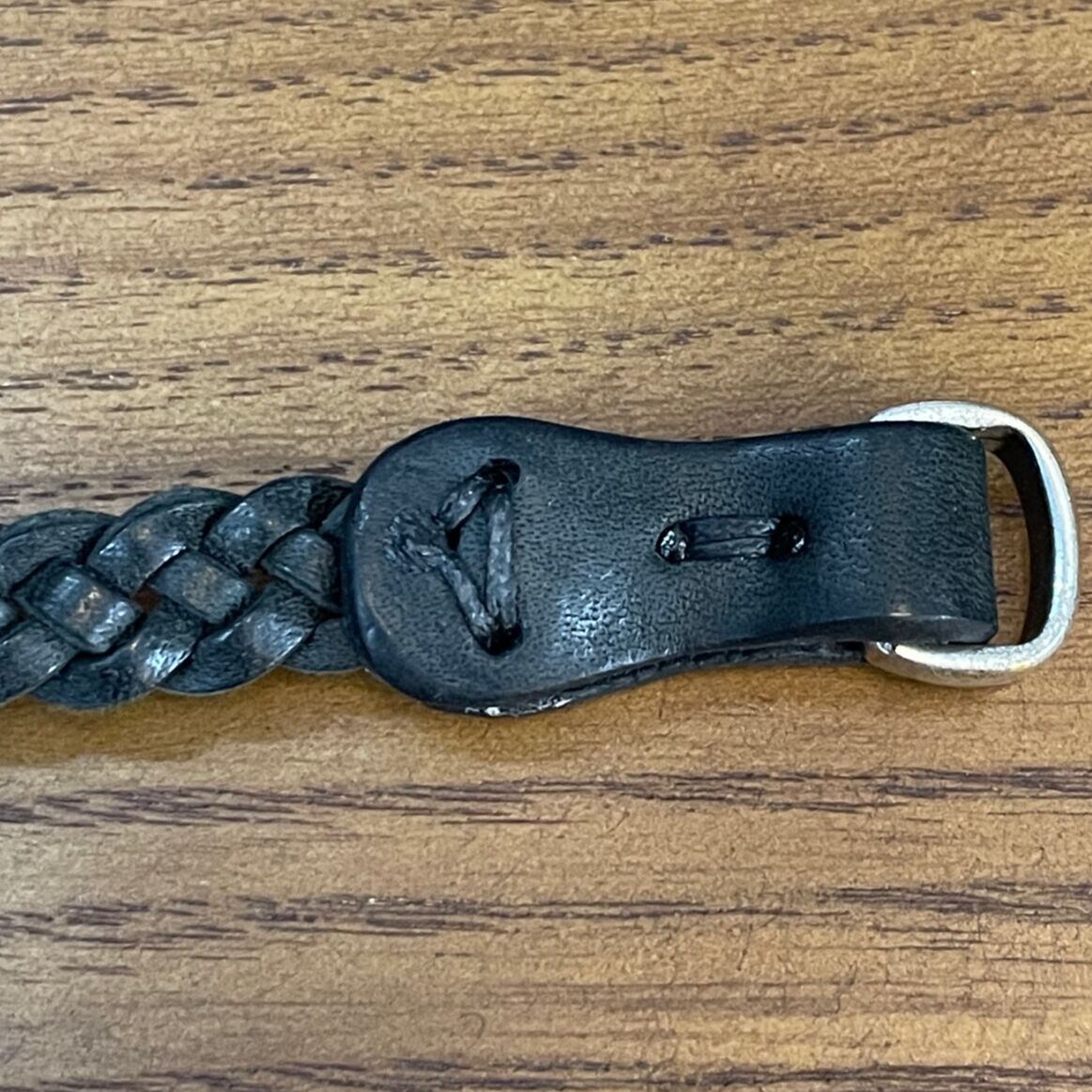 こちらは両サイドがループになっており、付属のシルクスカーフを通して着用するハンドメイドのレザーブレスレットです。