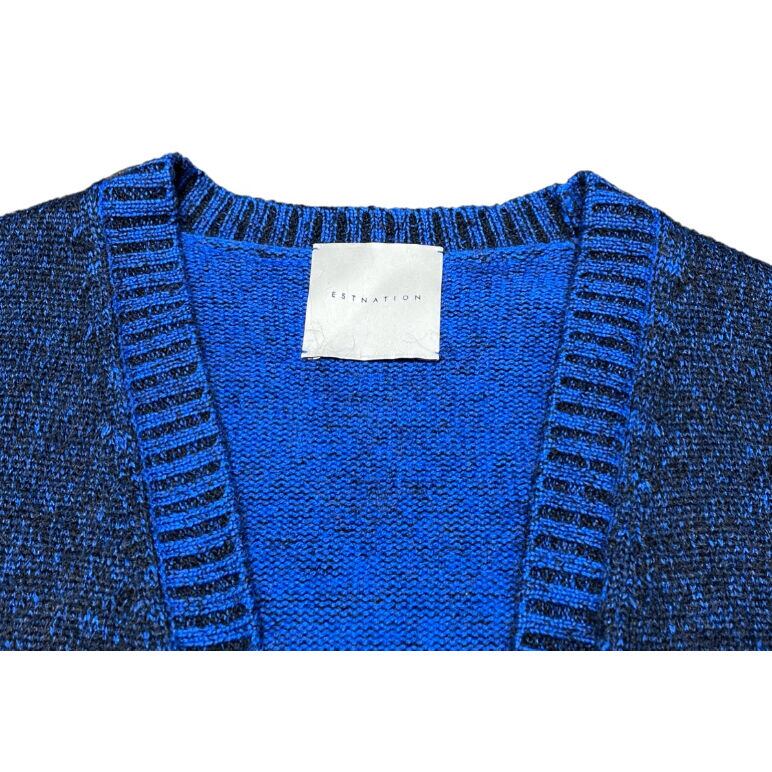 ESTNATION コート型カーディガン ブルー×ブラック Lサイズ