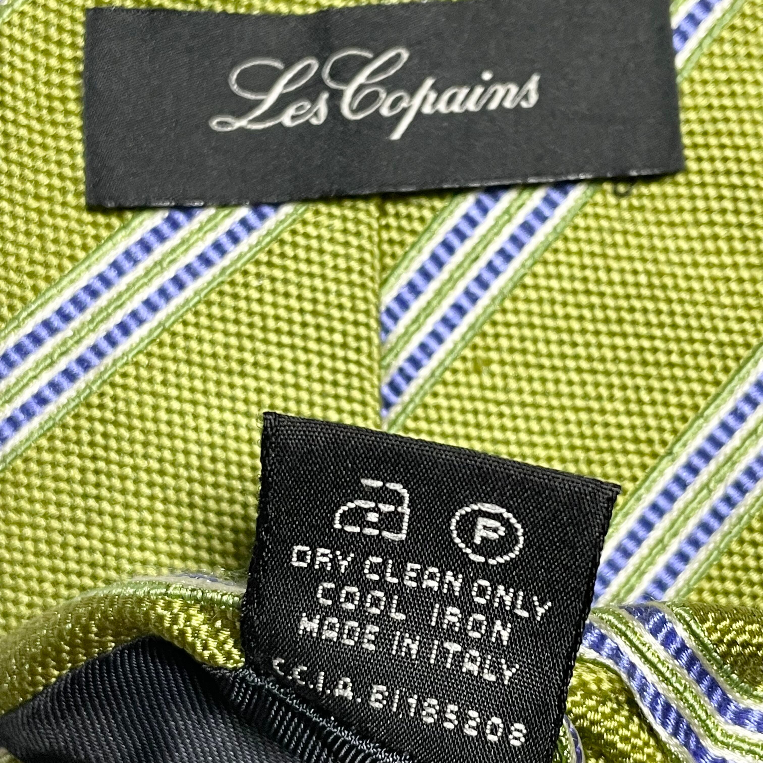 MADE IN ITALY製 Les Copains レジメンタルストライプ柄シルクネクタイ オリーブ