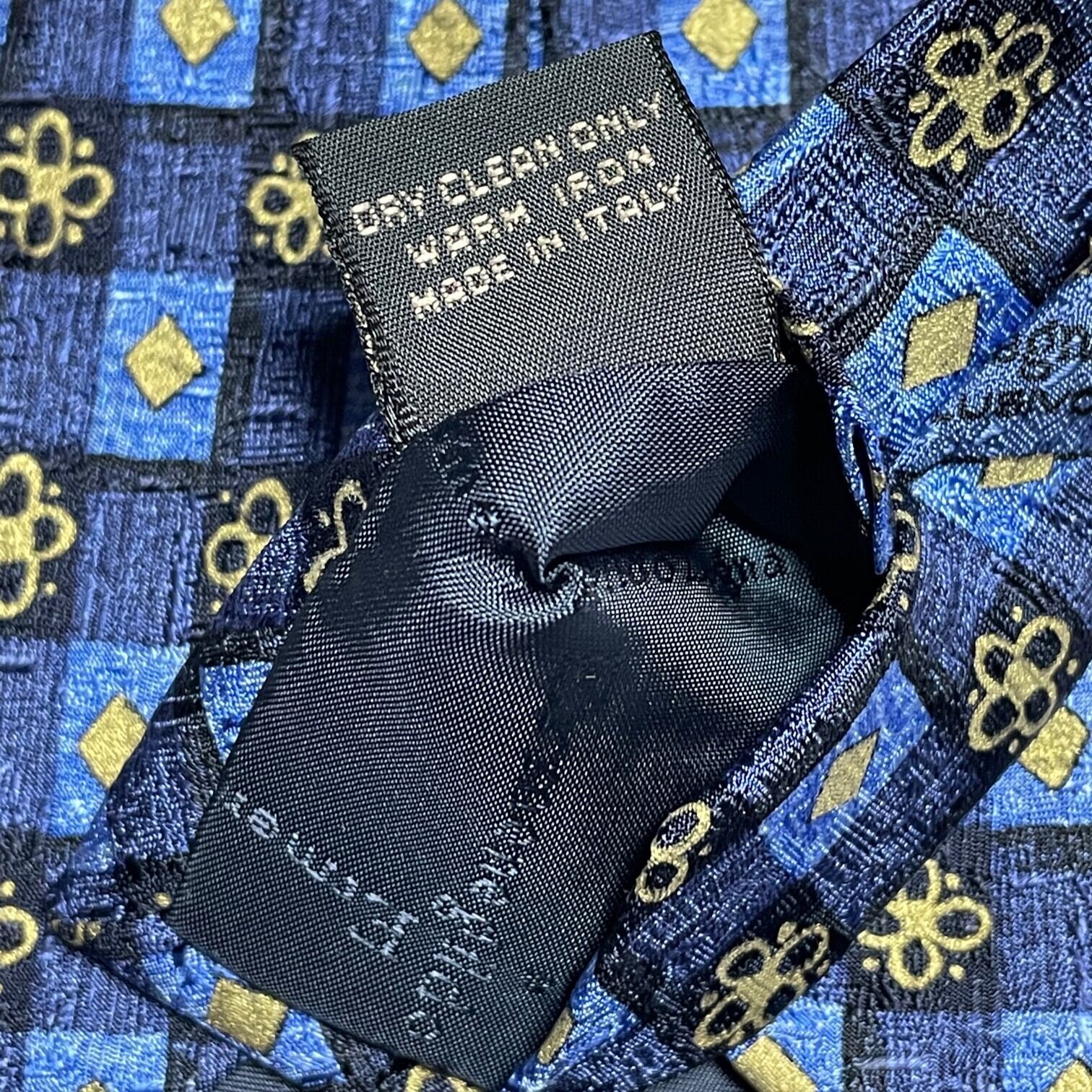 MADE IN ITALY製 Ermenegildo Zegna 小紋柄ブロックチェックシルクネクタイ ネイビー