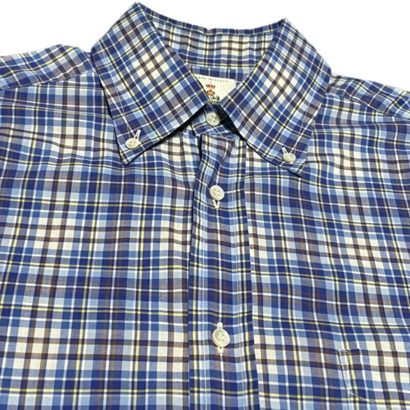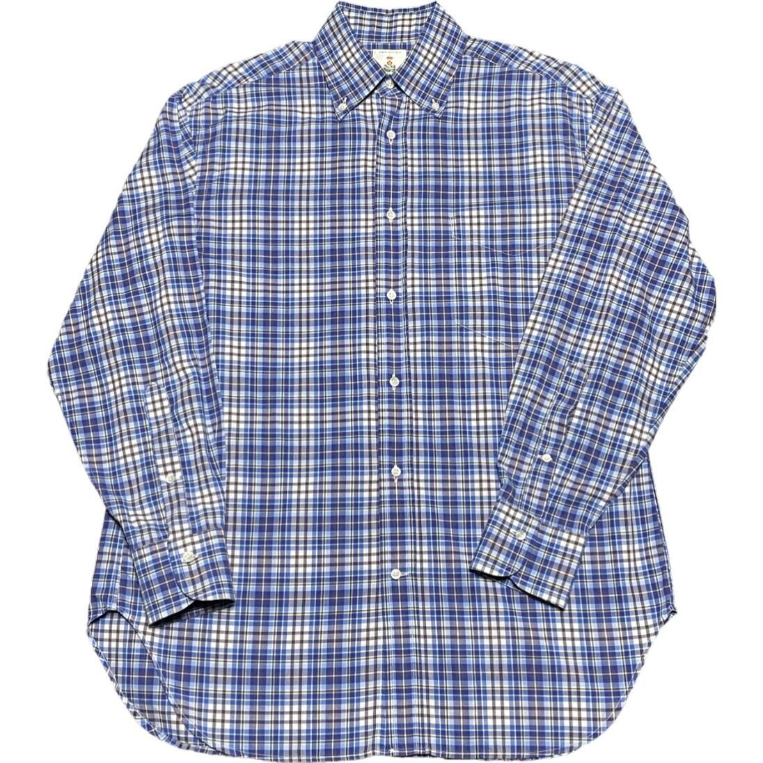 MADE IN ITALY製 GUY ROVER 長袖ボタンダウンチェックシャツ ブルー Mサイズ