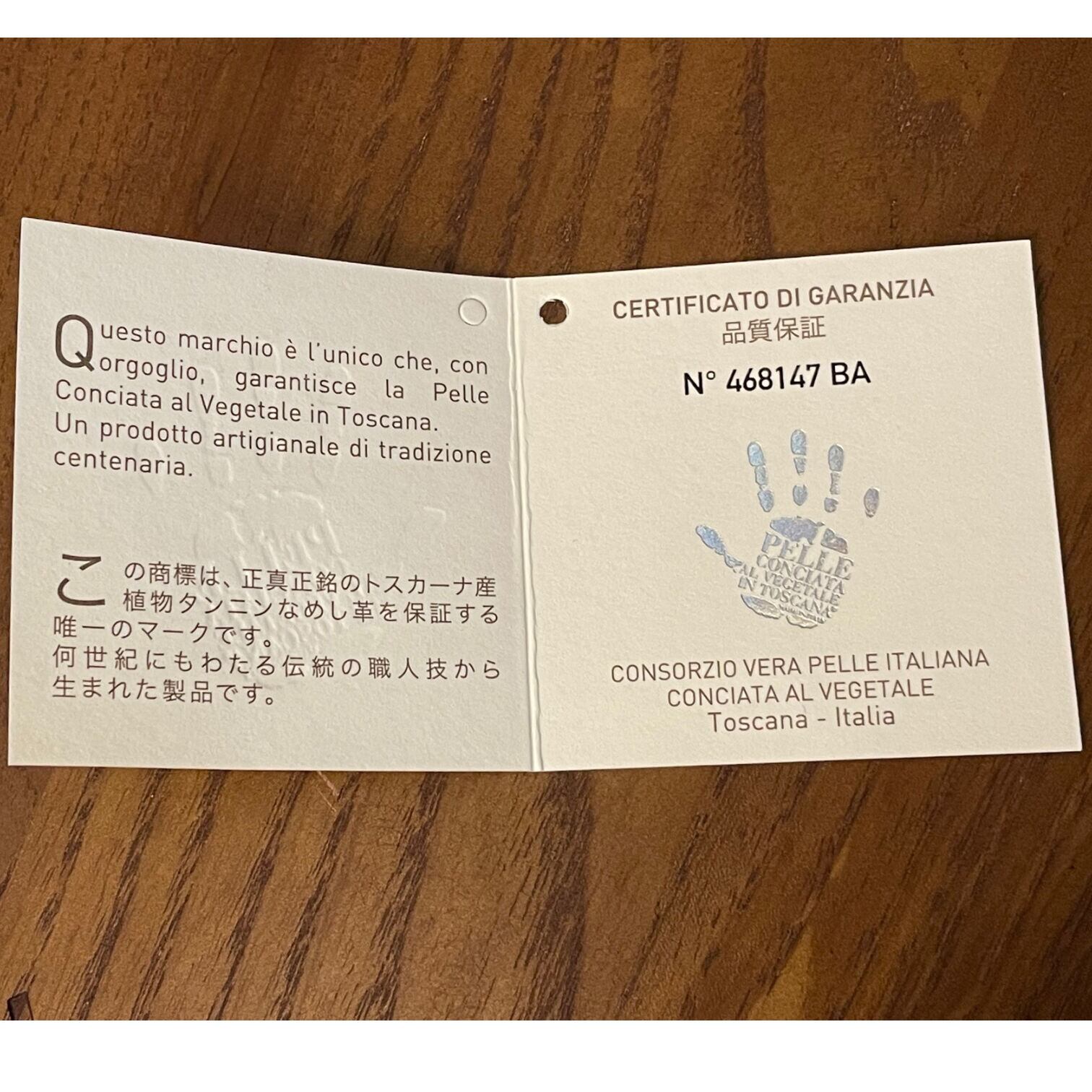 イタリアの植物タンニンレザーを使った証明書付きです。