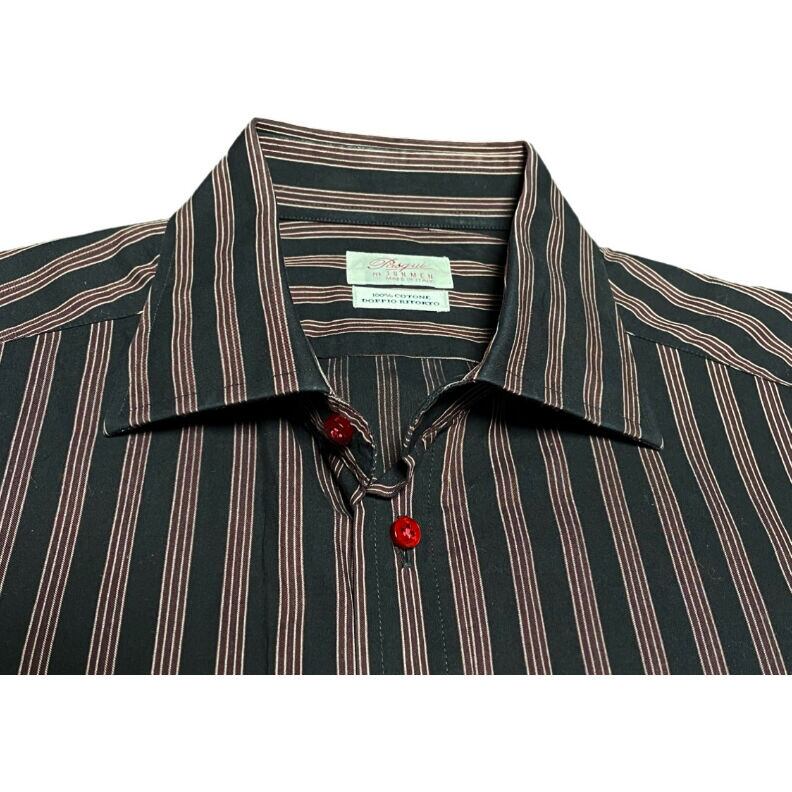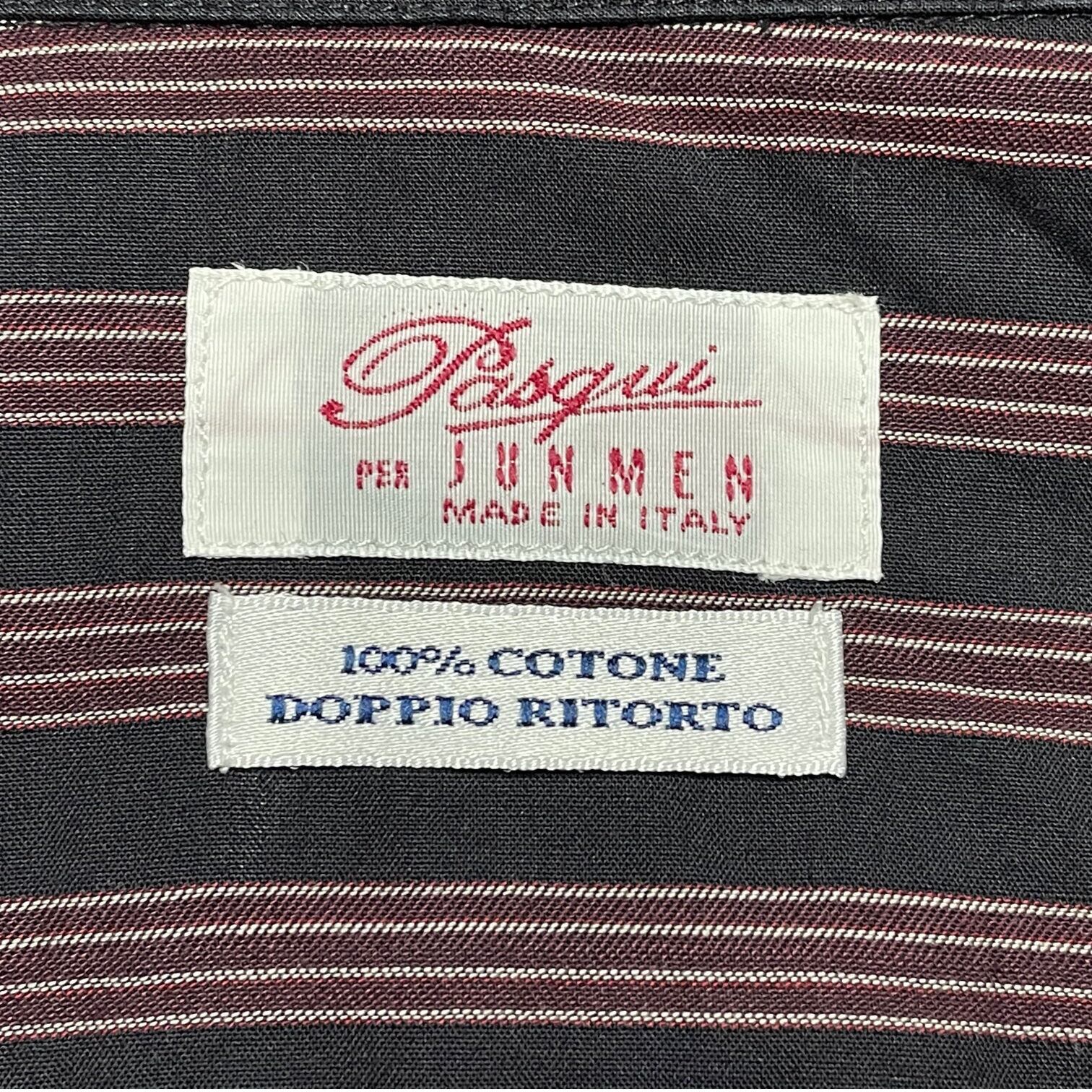 MADE IN ITALY製 Pasqui PER JUN MEN 長袖ストライプシャツ ブラック×ワイン 41-16サイズ