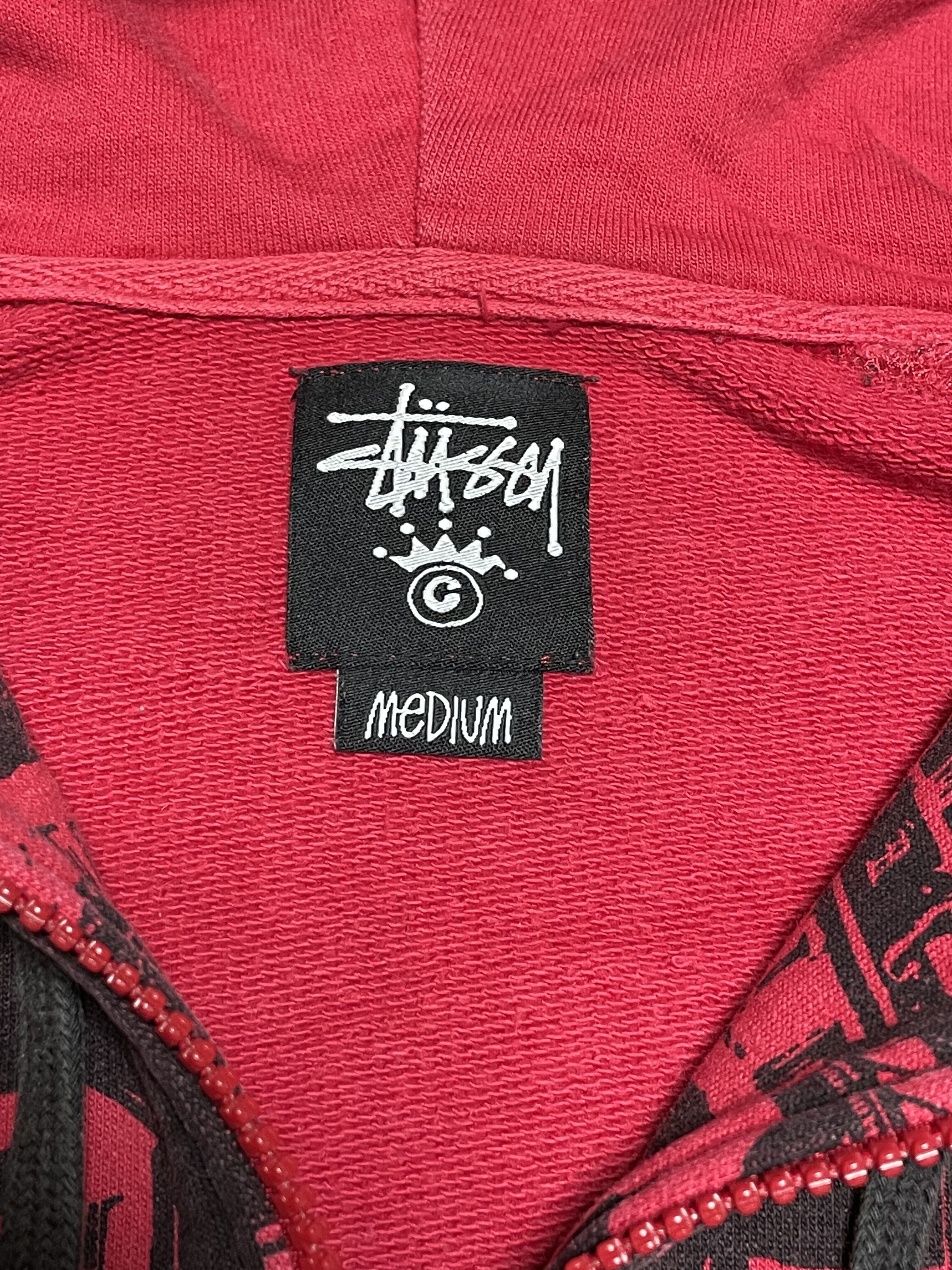 Stussy 総柄フルジップパーカー レッド Mサイズ