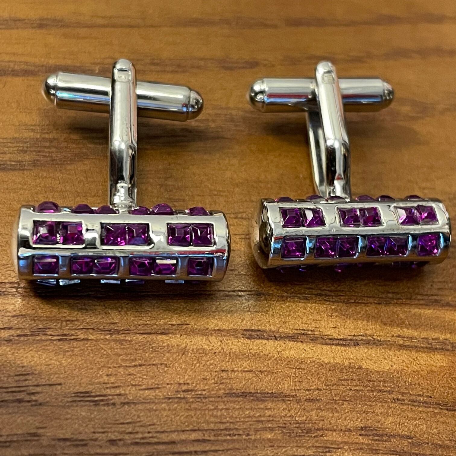 パープルラインストーン付きカフリンクス シルバー