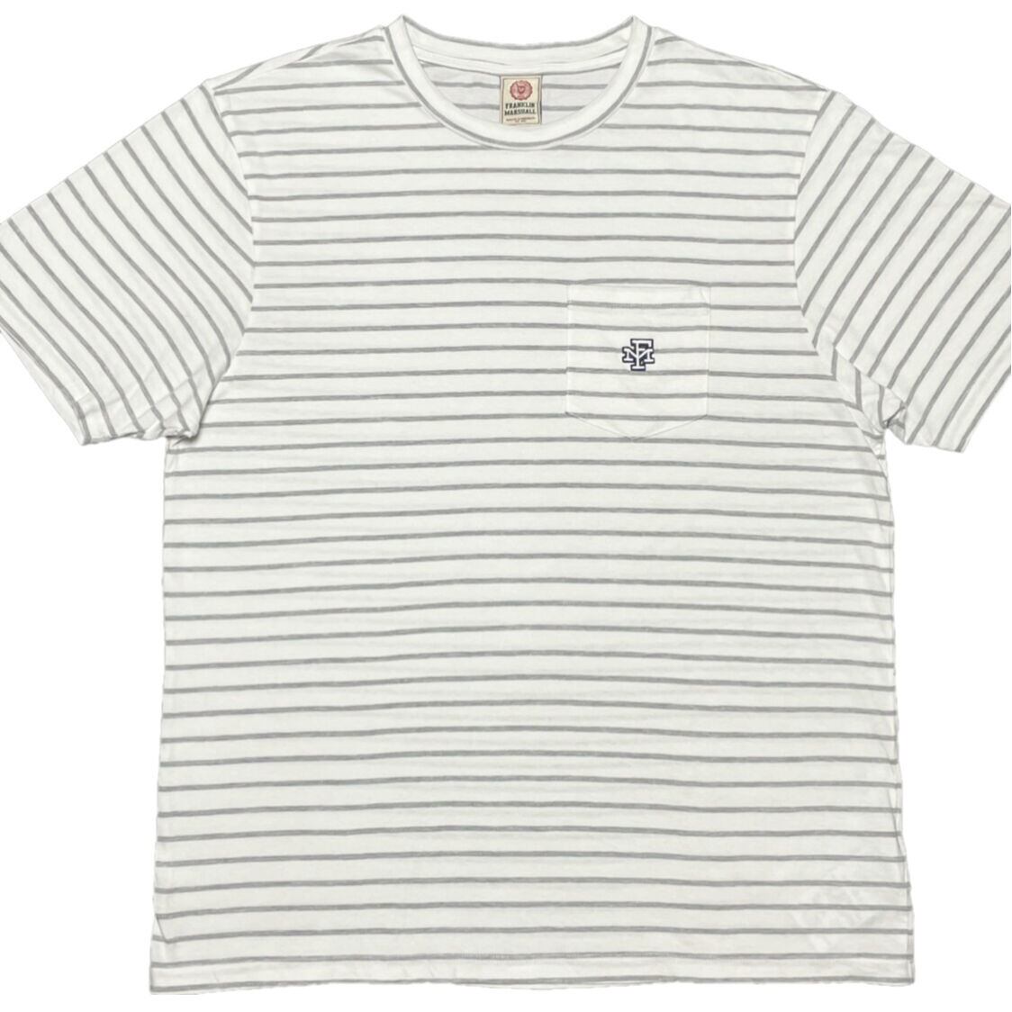 FRANKLIN MARSHALL ポケット付き半袖ボーダーTシャツ ホワイト×グレー Lサイズ