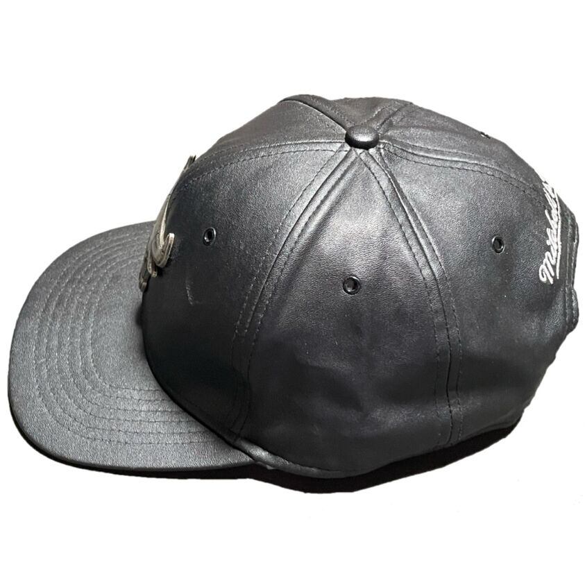 激レア mitchell & ness CHICAGO BULLS 合皮レザーメタルバックルスナップバックベースボールキャップ ブラック Fサイズ