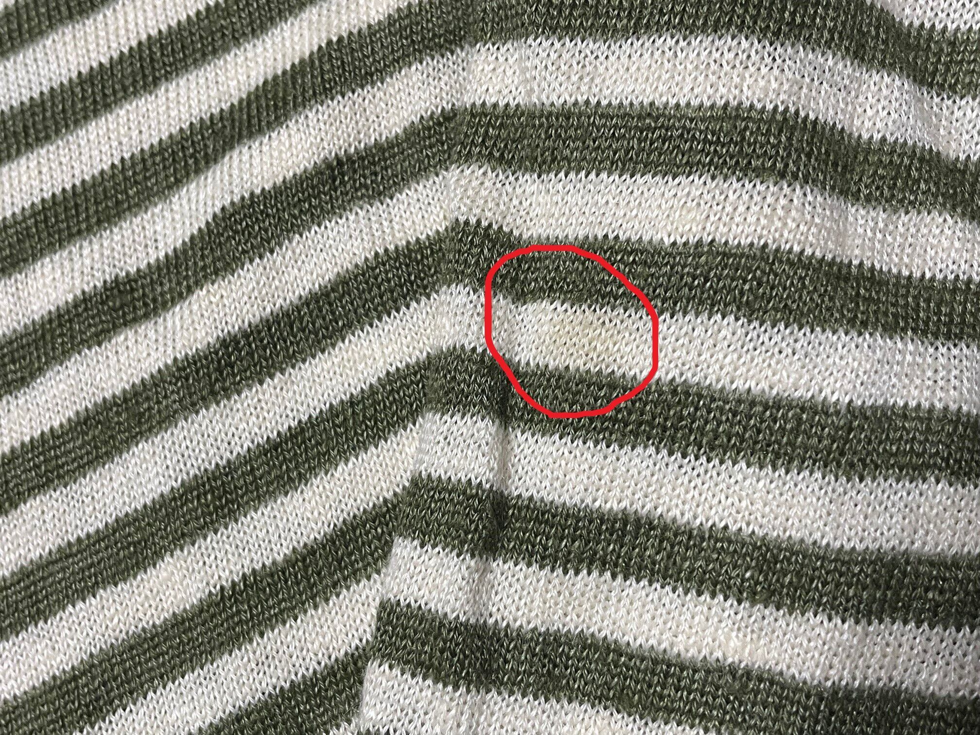 赤丸部分にシミや引っ掛けがあるので特価での販売となります。