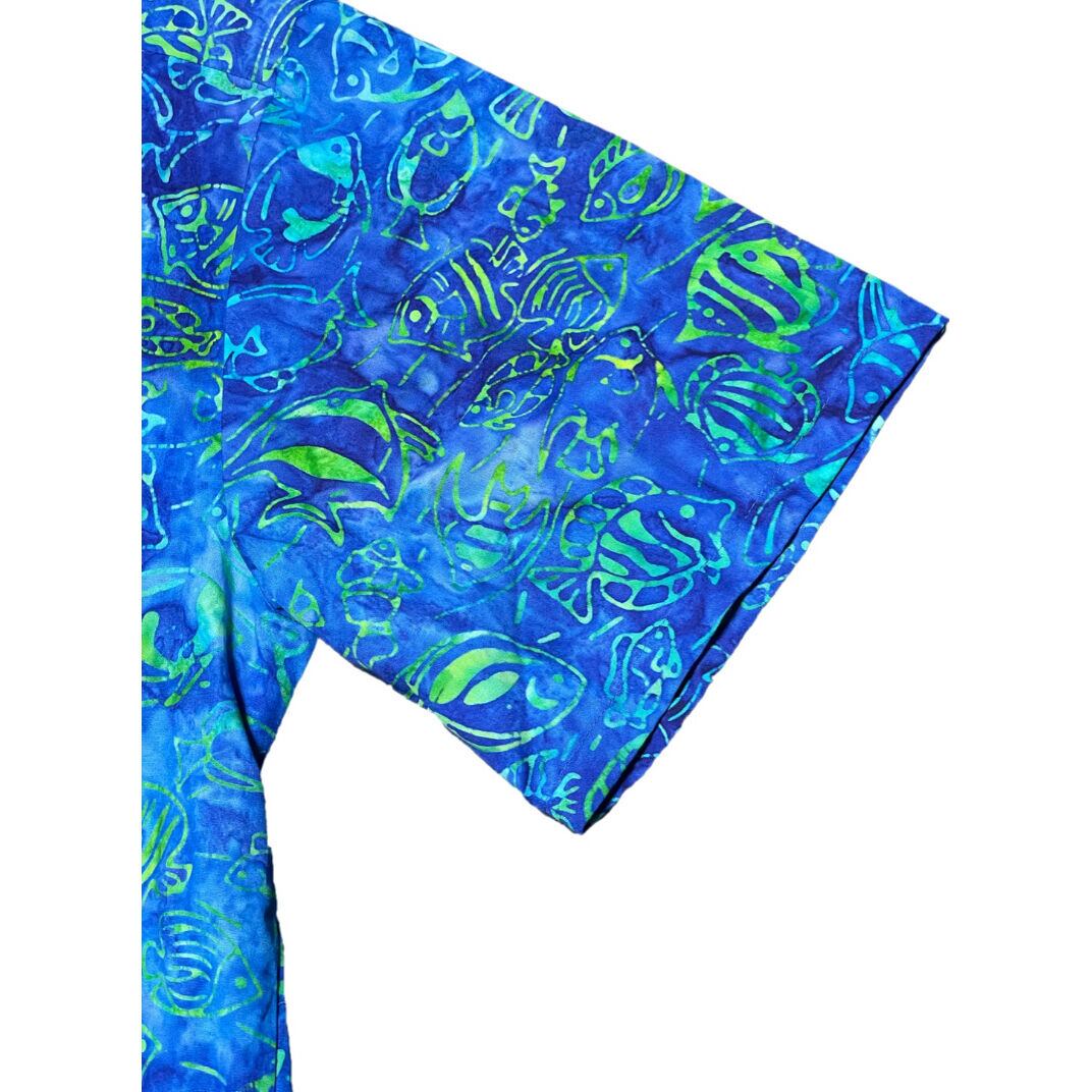 一目で上質な生地だと分かるハンドメイドでプリントされた美しい海の中にいる魚たちを忠実に再現したアロハシャツにピッタリの夏らしいデザインのおすすめの一品です。