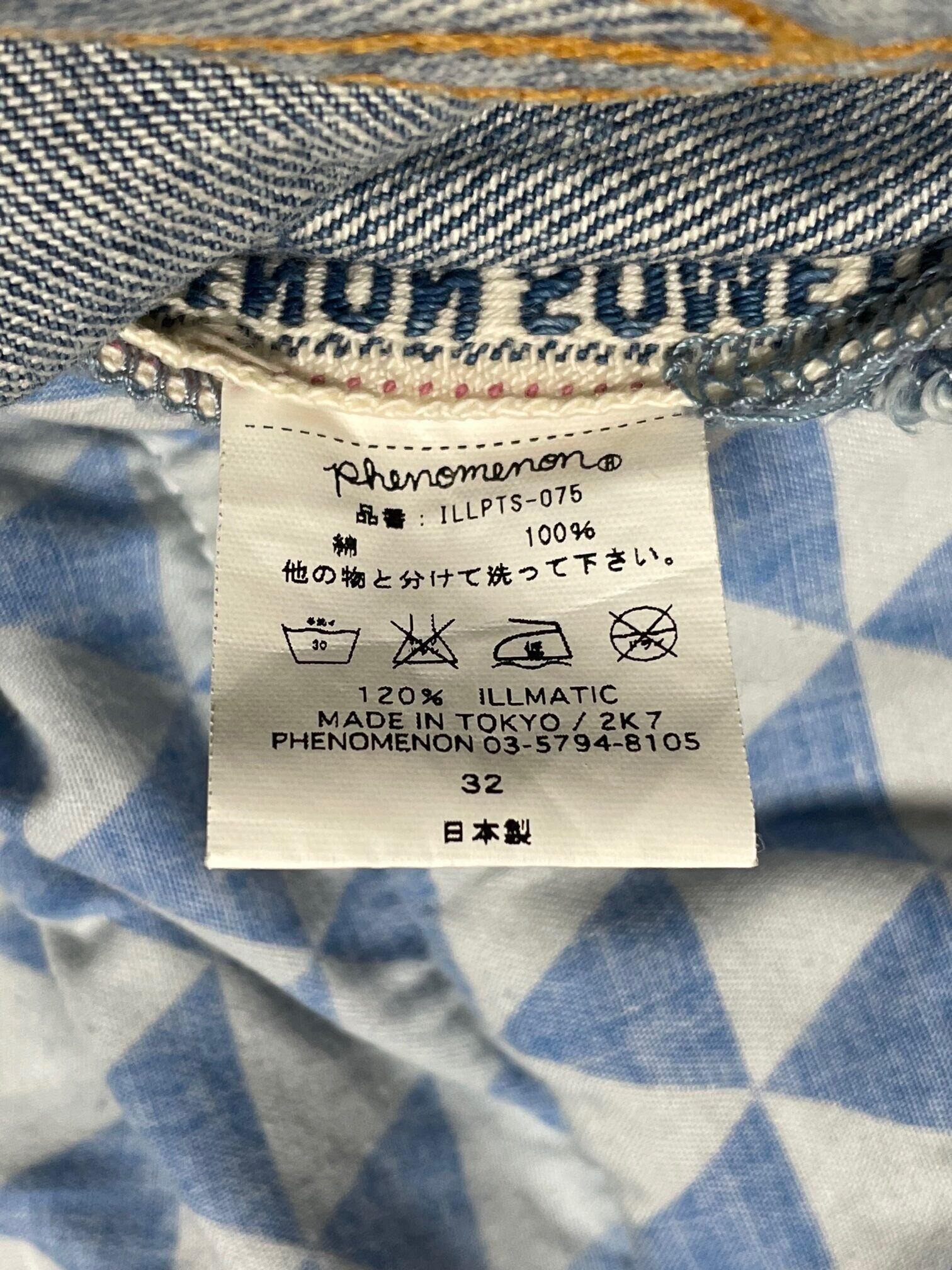 名作 MADE IN JAPAN製 PHENOMENON タイガーカモ切り返しデニムパンツ ライトインディゴ W32サイズ