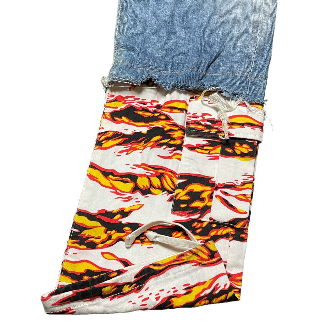 こちらは名作と呼ばれるタイガーカモ柄のカーゴパンツとデニムパンツをフュージョンさせたデニムパンツになります。
