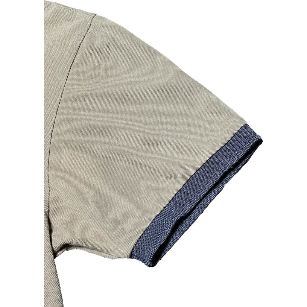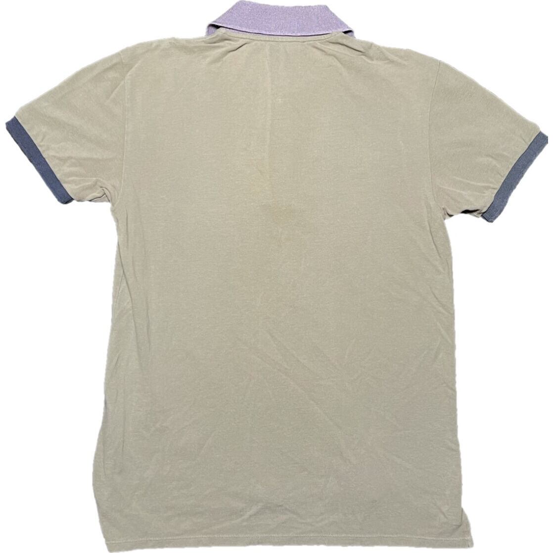 襟と袖口を同じ色で合わせるクレリック型のポロシャツは多いですが、こちらは襟はラベンダー、袖はチャコールグレーという2色使いのマークジェイコブスらしい色使いがポイントの商品です。