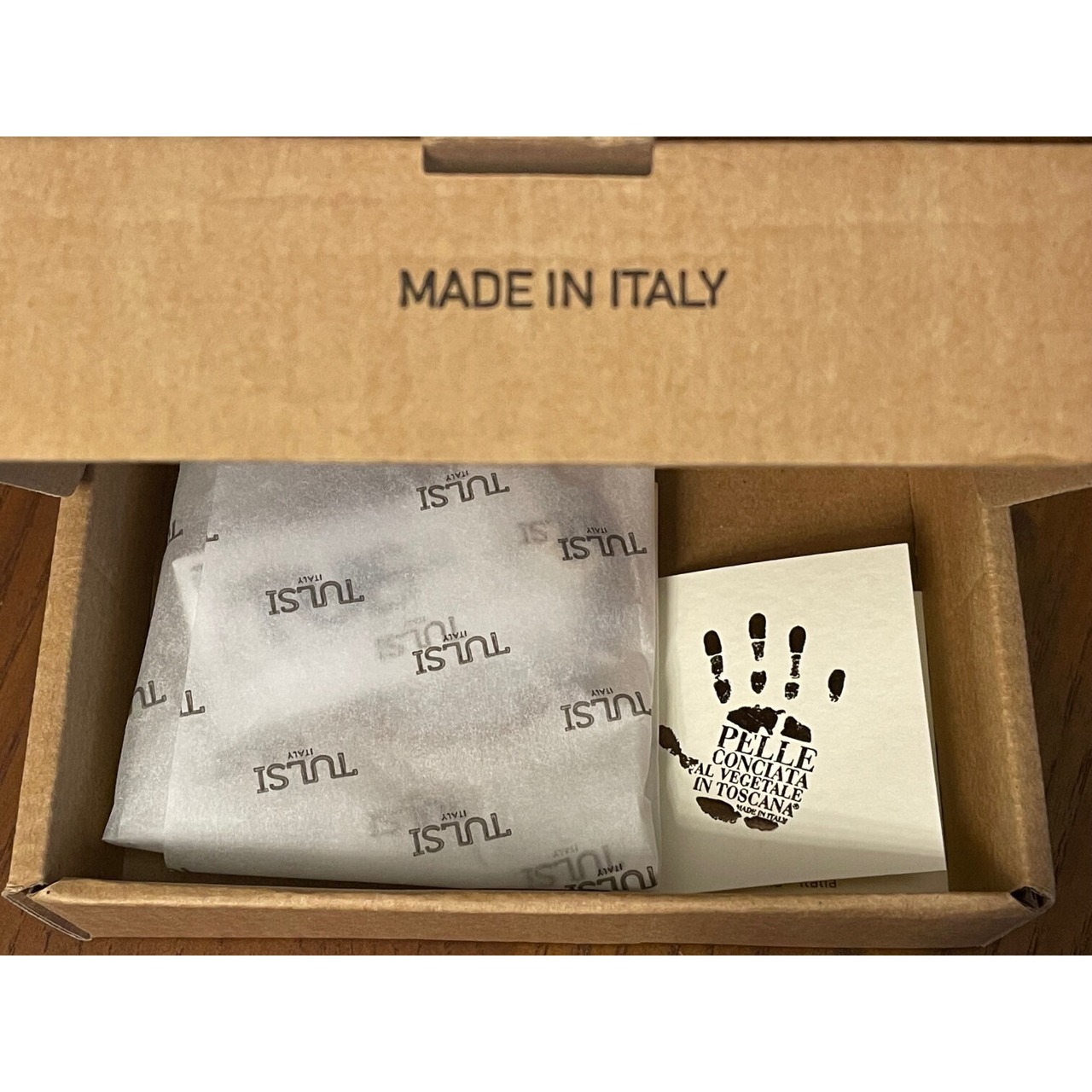 イタリアの植物タンニンレザーを使った証明書付きです。