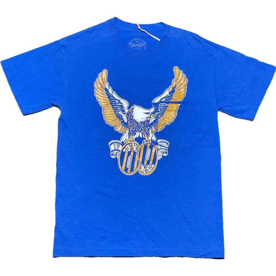 オリジナル袋付き ☆タグ付き新古品☆ TENDERLOIN オリジナルバックプリント入り イーグル柄ポケット付き半袖Tシャツ ブルー Sサイズ