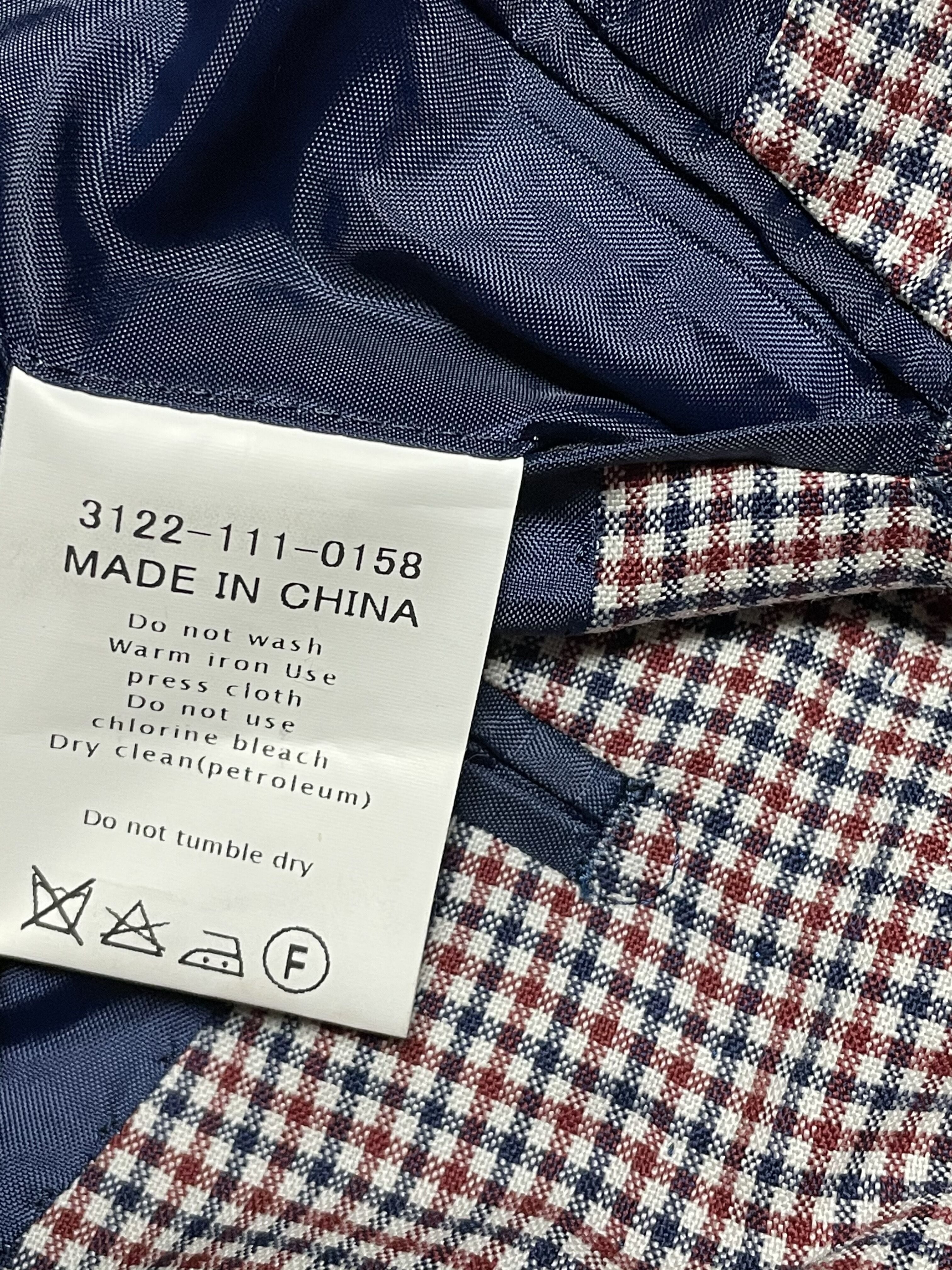 チェック柄で目立ちませんが右袖の赤丸部分にシミがあるので安価での販売となります。