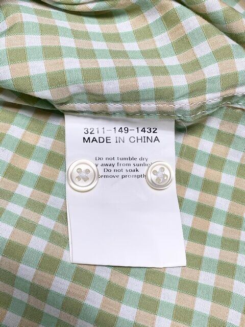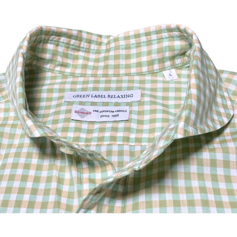 GREEN LABEL RELAXING SOMELOS生地 長袖チェックシャツ ライトグリーン×イエロー Lサイズ