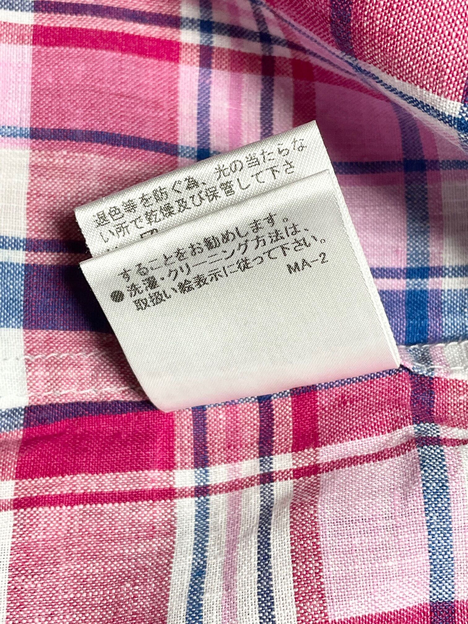こちらはリネン100%のピンク色がきれいなチェック柄のシャツになります。