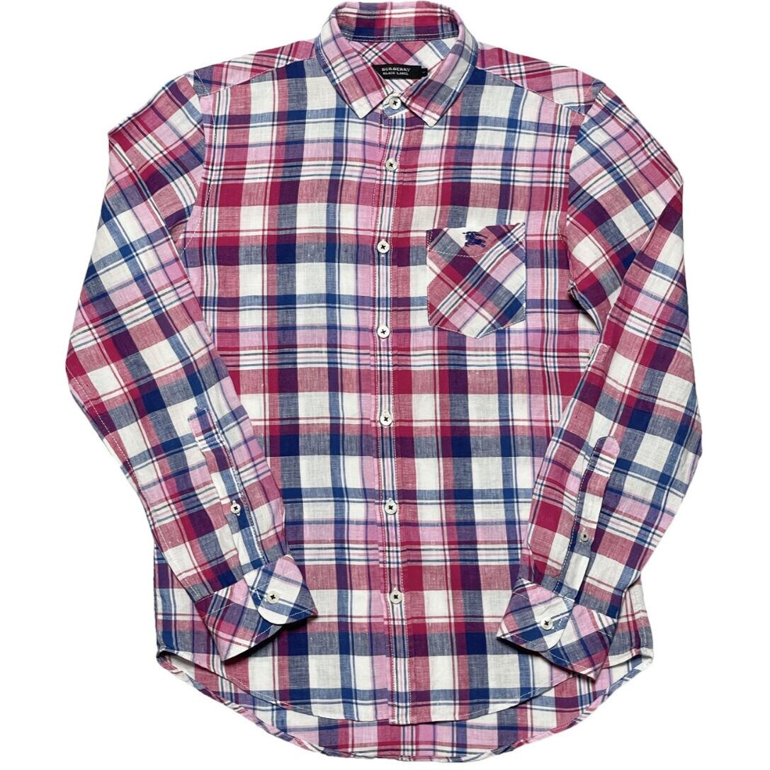 BURBERRY BLACK LABEL チェック柄長袖リネンシャツ ピンク 1サイズ