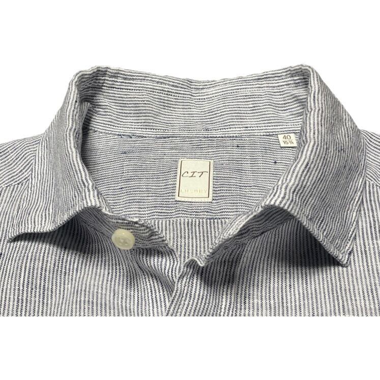 タグ付き美品 CIT LUXURY 長袖リネンシャツ ホワイト×ネイビー 40-15 34サイズ