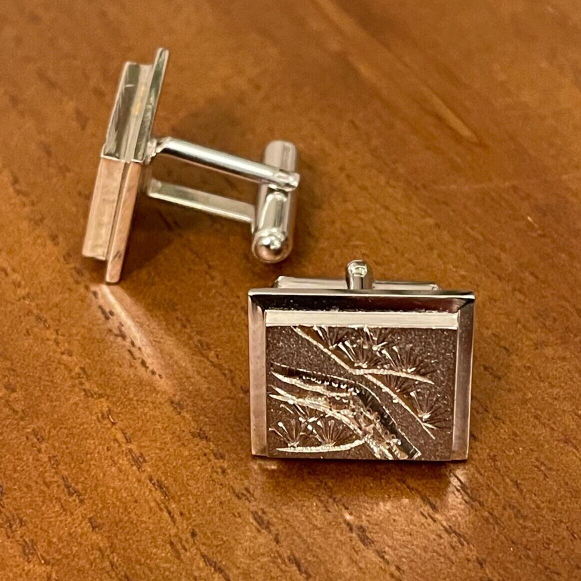 京都の有名な観光スポットの嵐山が彫ってあるデザインで、袖口にさりげないおしゃれ感を演出してくれるおすすめの一品です。