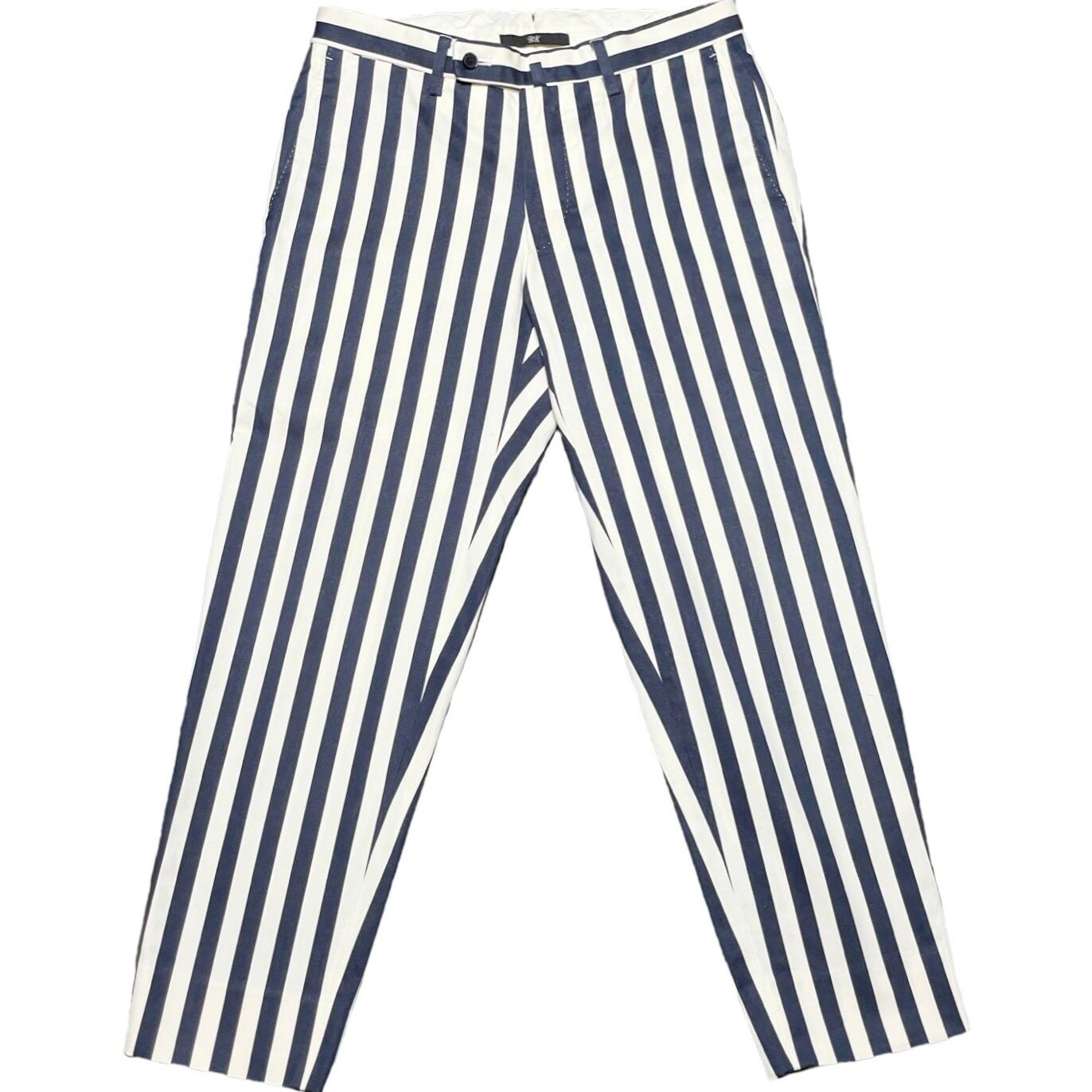 MADE IN JAPAN製 BOW & ARROWS UNITED ARROWS ストライプ柄コットンスラックス ネイビー×ホワイト 44サイズ