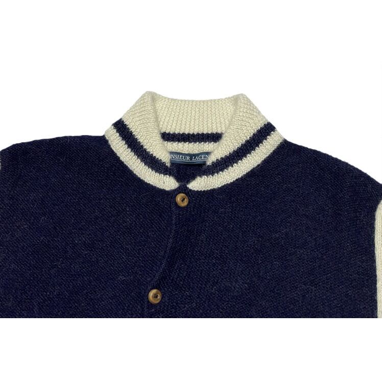 アルパカ100% MONSIEUR LACENAIRE スタジャン型カーディガン ネイビー Sサイズ