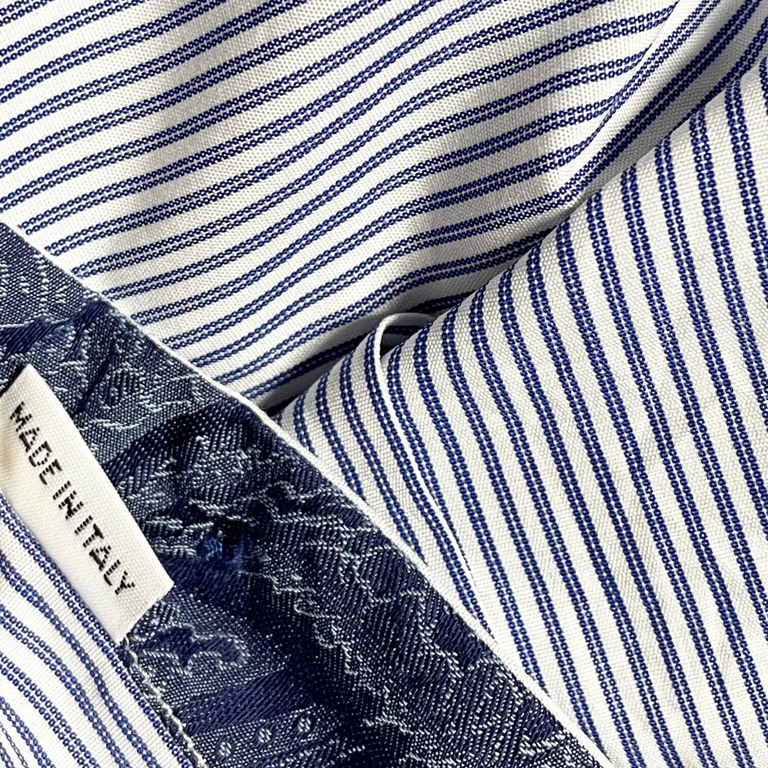 MADE IN ITALY製 ANDREA PALOMBINI ボタンダウン長袖ドレスシャツ ブルーストライプ Sサイズ