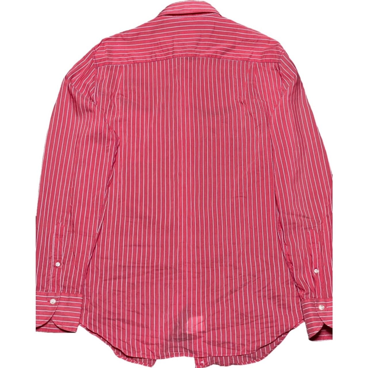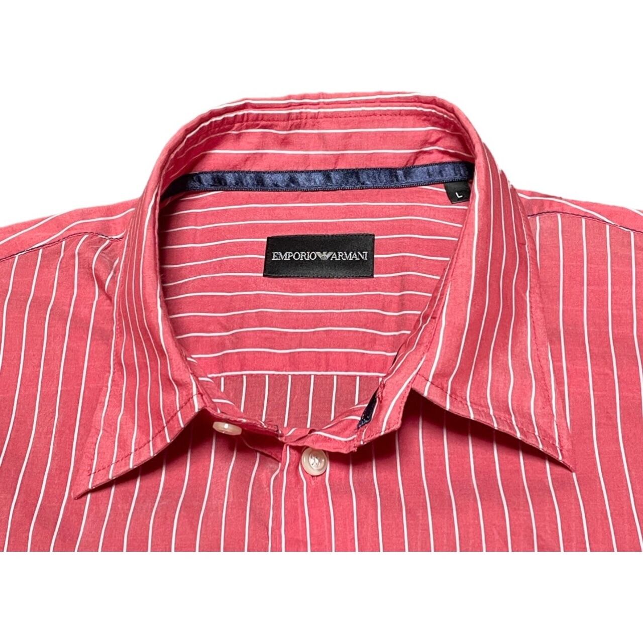 EMPORIO ARMANI コットンシルク長袖ストライプシャツ レッド Lサイズ