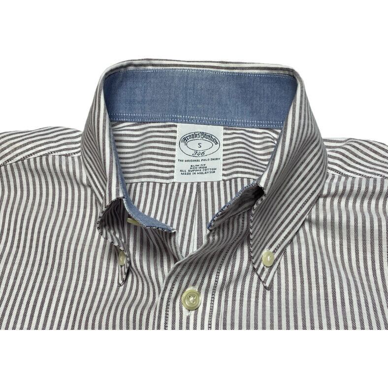 BROOKS BROTHERS スーピマコットンボタンダウン長袖シャツ グレーストライプ Sサイズ ノンアイロン加工