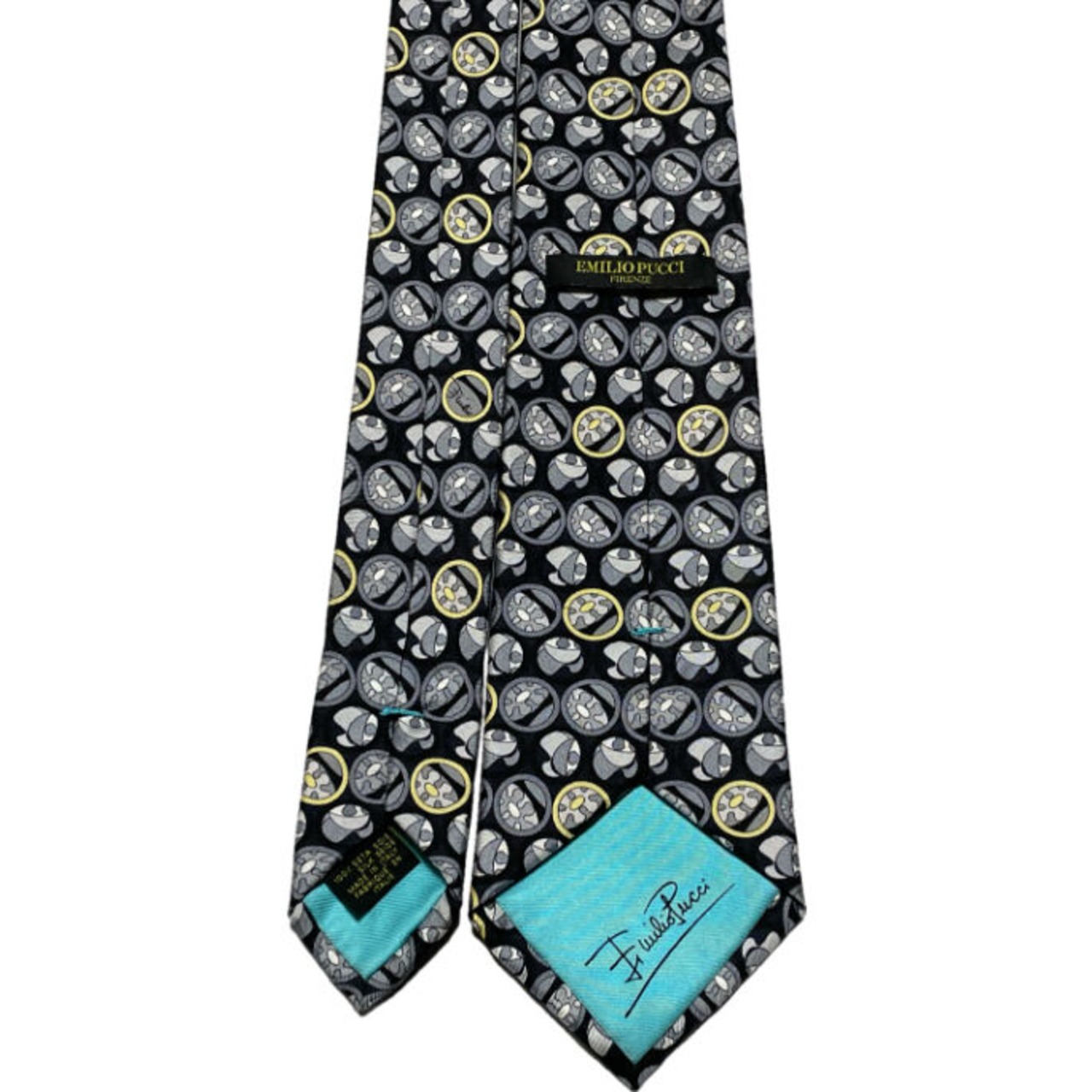 MADE IN ITALY製 EMILIO PUCCI 総柄シルクネクタイ ブラック