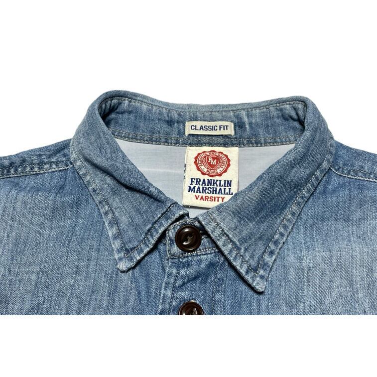 FRANKLIN MARSHALL VARSITY ワッペン付きデニムシャツ ライトインディゴ Lサイズ