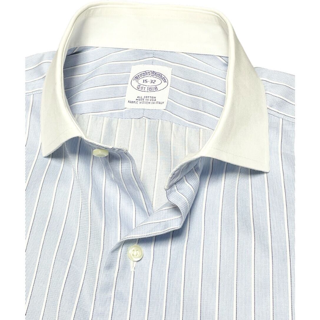 MADE IN USA製 BROOKS BROTHERS クレリックダブルカフス長袖ストライプシャツ サックス 15-32サイズ イタリア製生地使用