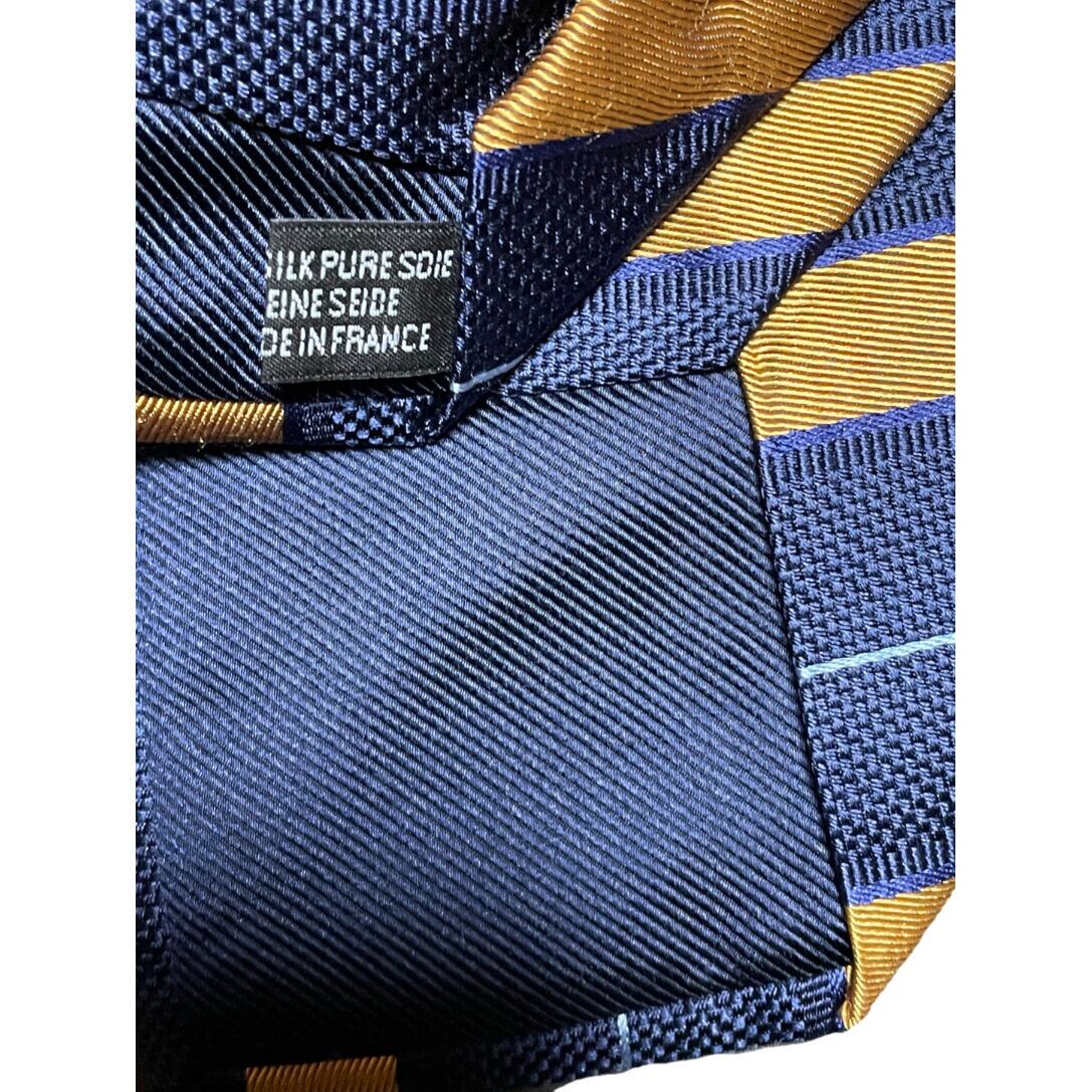 MADE IN FRANCE製 ATELIER F&B GENEVE レジメンタルストライプ柄シルクネクタイ ネイビー×ゴールド