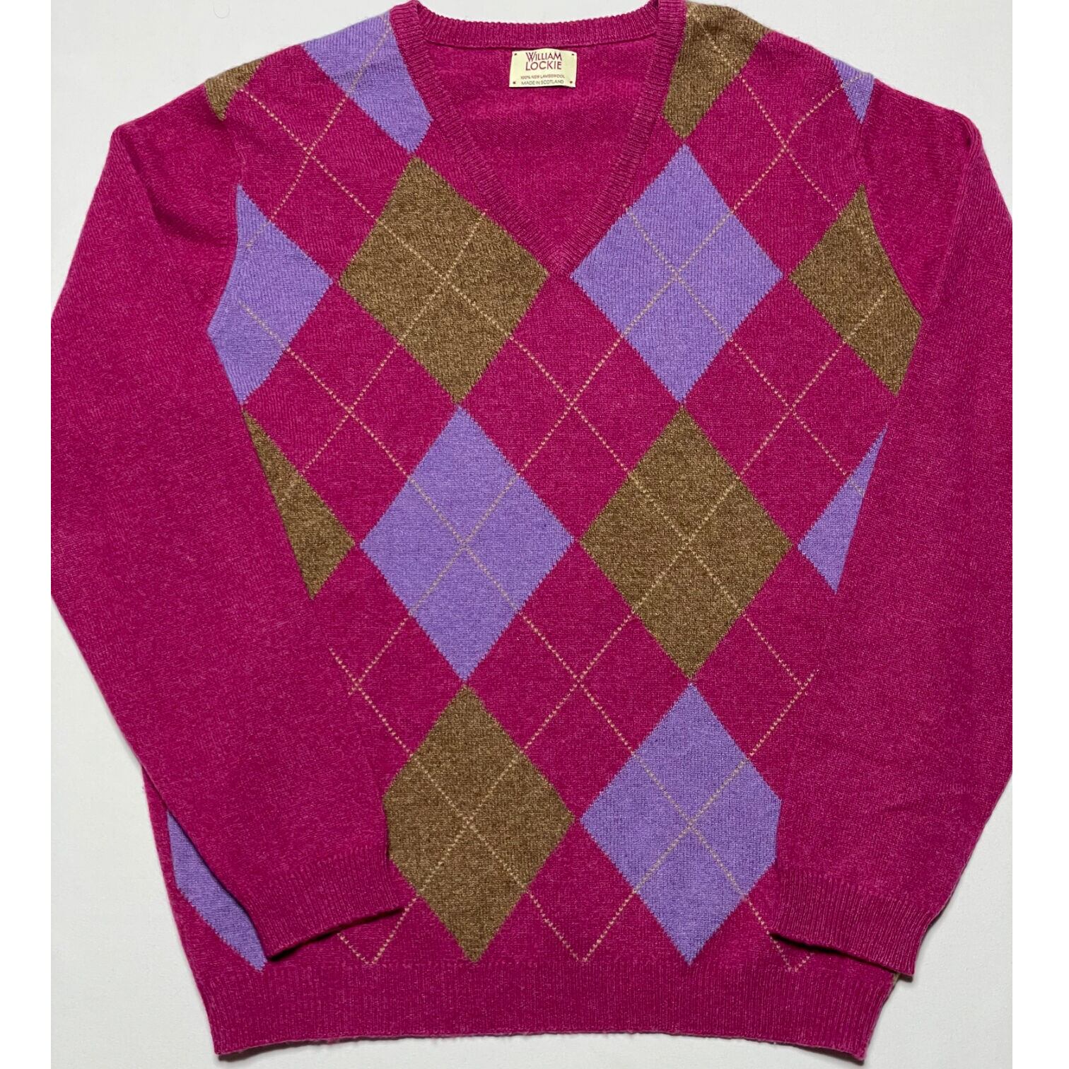 MADE IN SCOTLAND製 WILLIAM LOCKIE アーガイル柄ラムウールVネックセーター ピンク 40サイズ