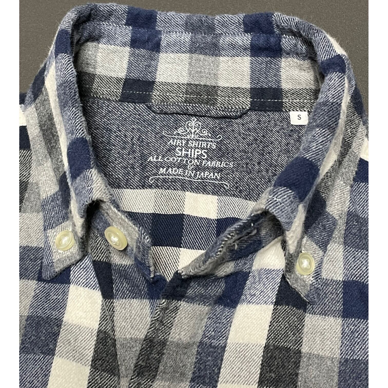 SHIPS ブロックチェック柄 ボタンダウンシャツ ネイビーSサイズ