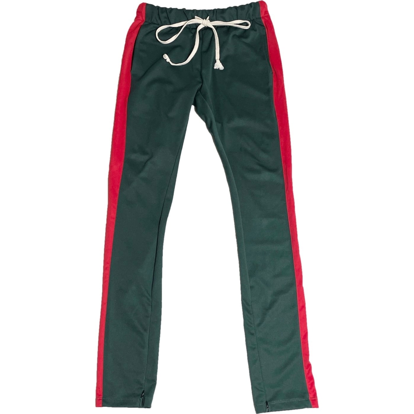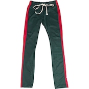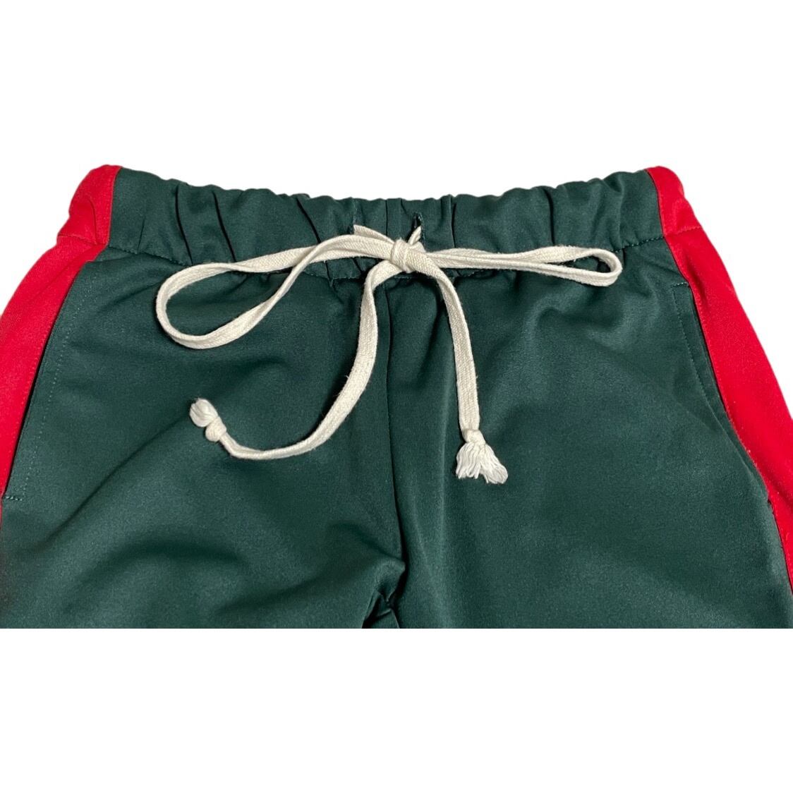 こちらは人気ラグジュアリーブランドのGUCCI(グッチ)で人気のあるグッチカラーと呼ばれるグリーンとレッドを基調としたスキニータイプのジャージパンツです。