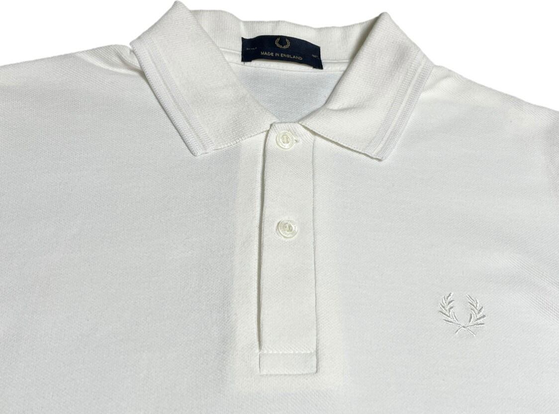 MADE IN ENGLAND製 FRED PERRY 襟ライン半袖鹿の子ポロシャツ ホワイト 36サイズ