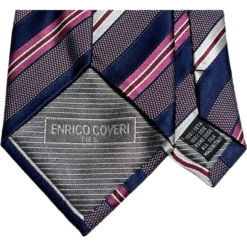 MADE IN ITALY製 ENRICO COVERI レジメンタルストライプ柄シルクネクタイ ネイビー×ワイン