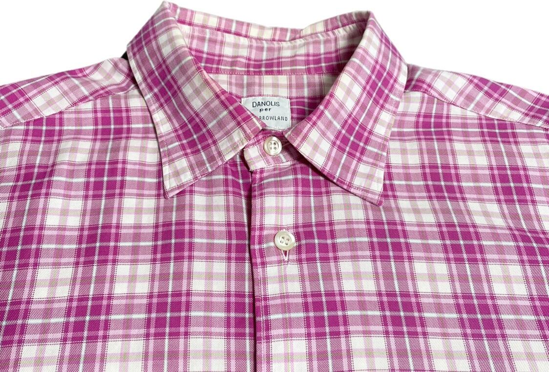 MADE IN ITALY製 DANOLIS per TOMORROWLAND 長袖チェックシャツ ピンク Lサイズ