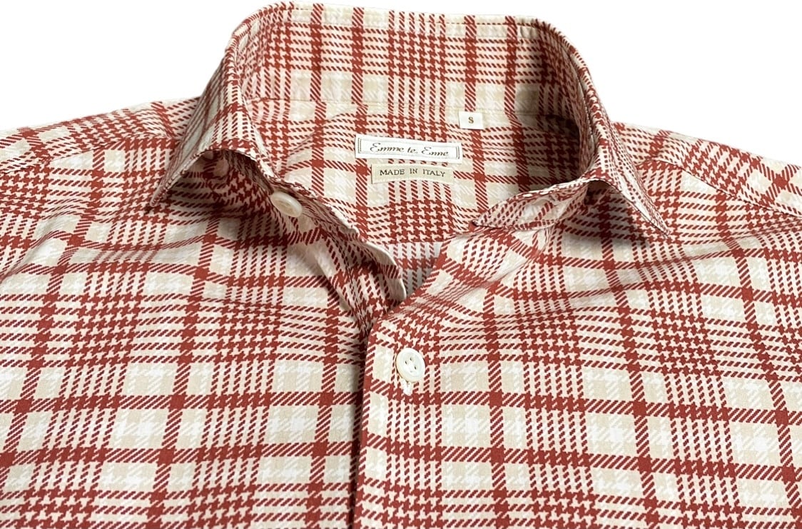 MADE IN ITALY製 Emme te. Emme 長袖プリントチェックシャツ レッド Sサイズ