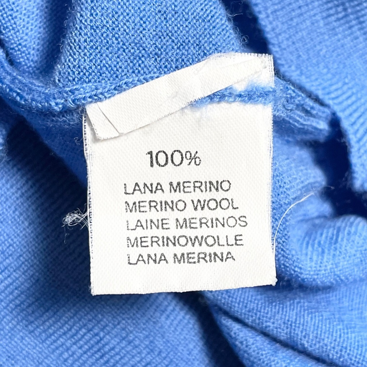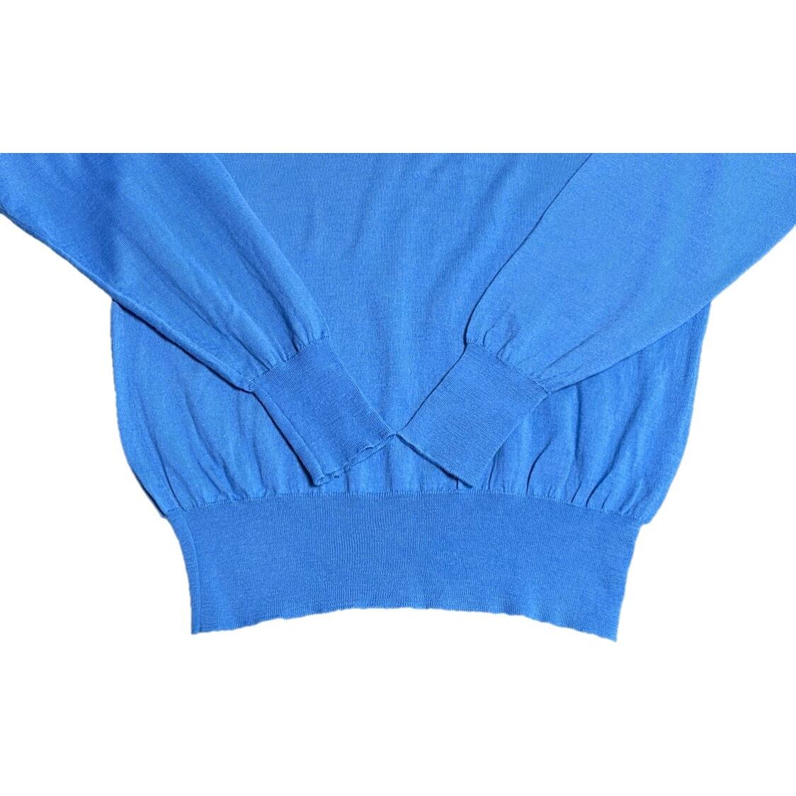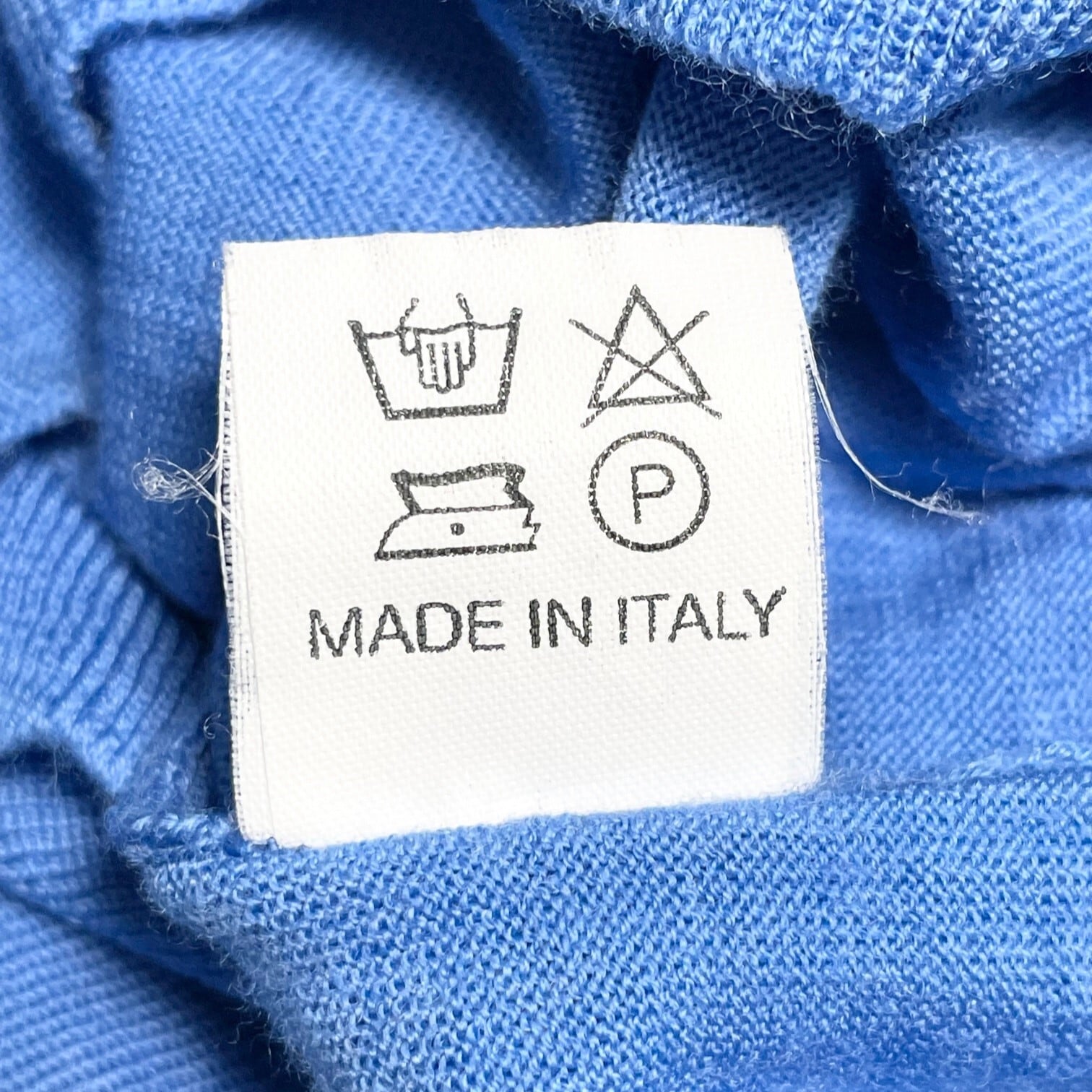 MADE IN ITALY製 HEMDECO メリノウールVネックセーター ブルー 46サイズ