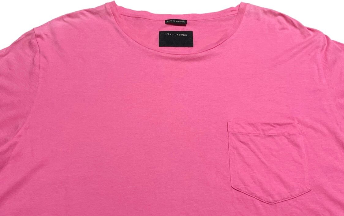 MADE IN PORTUGAL製 MARC JACOBS 胸ポケット付き半袖クルーネックTシャツ ピンク XLサイズ