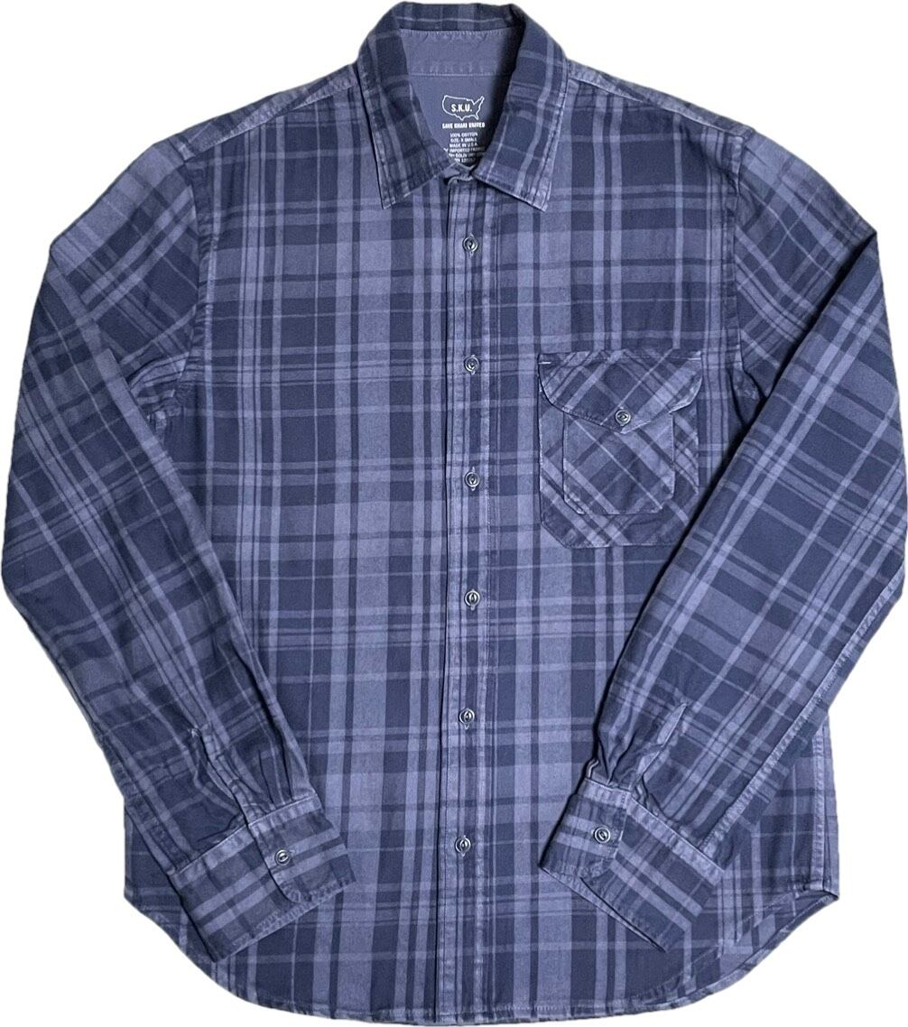 MADE IN USA製 SAVE KHAKI UNITED 長袖チェック柄コットンシャツ ネイビー XSサイズ