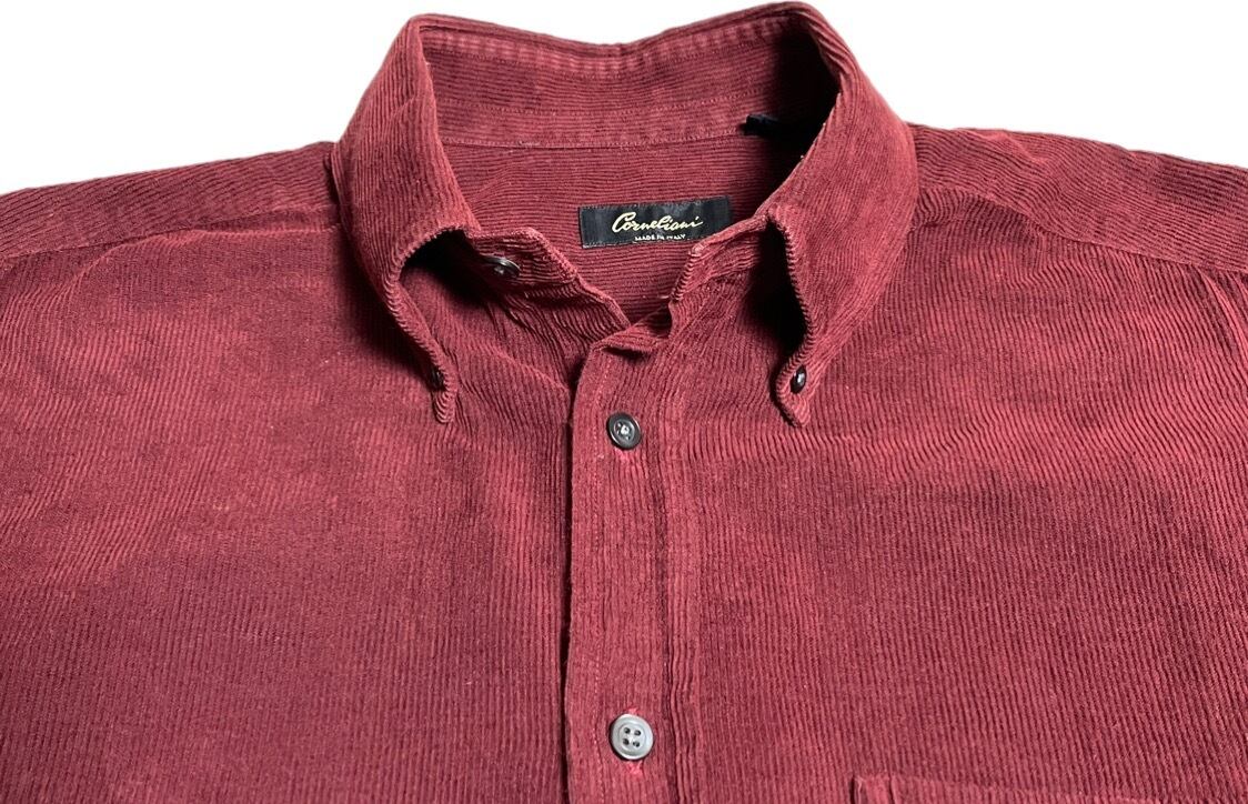 MADE IN ITALY製 CORNELIANI 長袖ボタンダウンコーデュロイシャツ ワイン Lサイズ