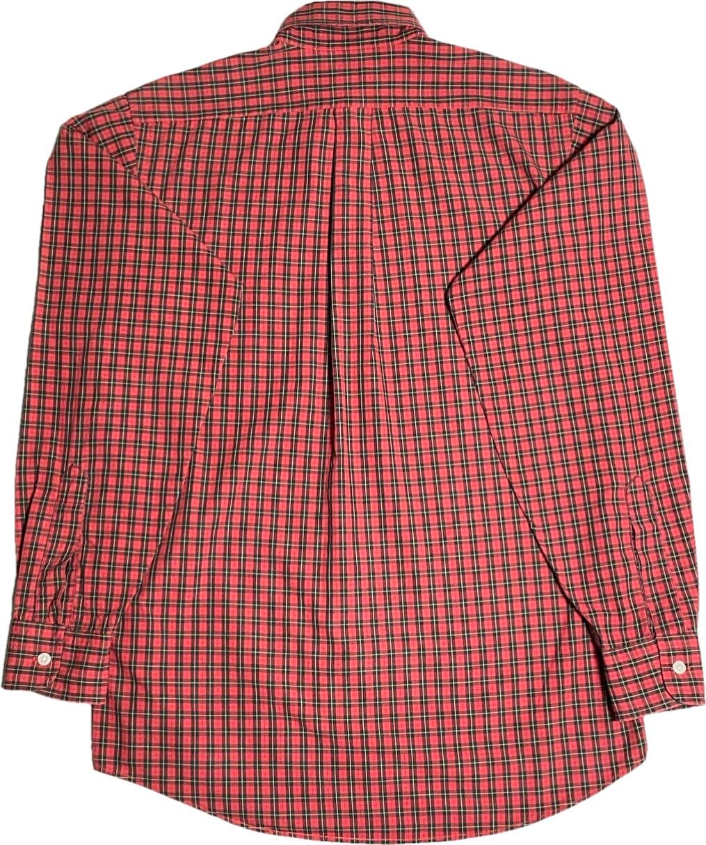 こちらはクリスマスっぽいカラーリングが特徴的なチェック柄の長袖ボタンダウンシャツになります。