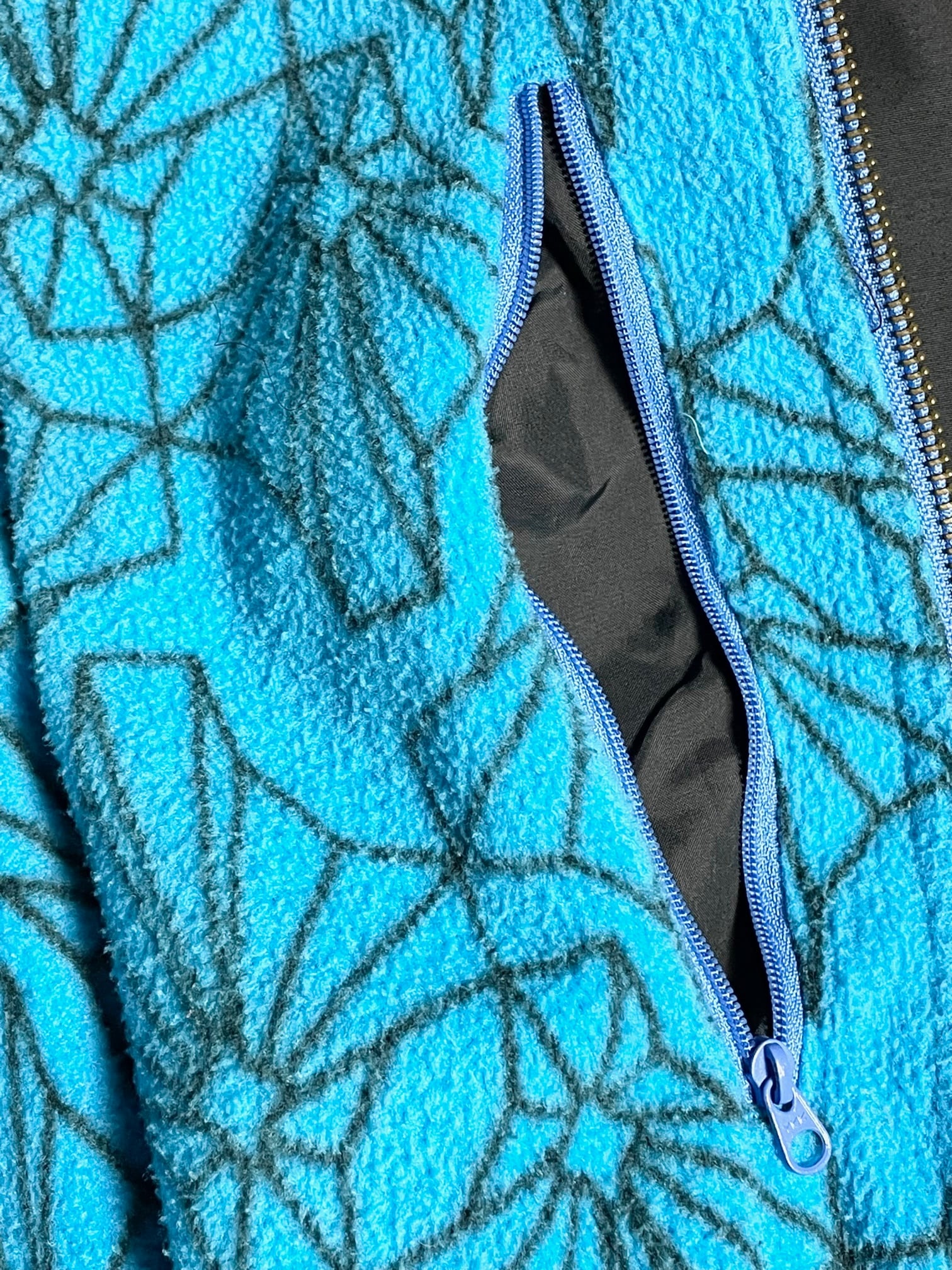 こちらはアメリカの人気スケーターブランドTHRASHER(スラッシャー)とコラボレーションしたマウンテンパーカーと呼ばれる撥水性や防寒性のあるナイロン素材を使ったジャケットで、デザイン性のある裏地はフリース仕様になっており、裏地のブルーに合わせたジッパーや刺繍がオシャレなおすすめの一品です。