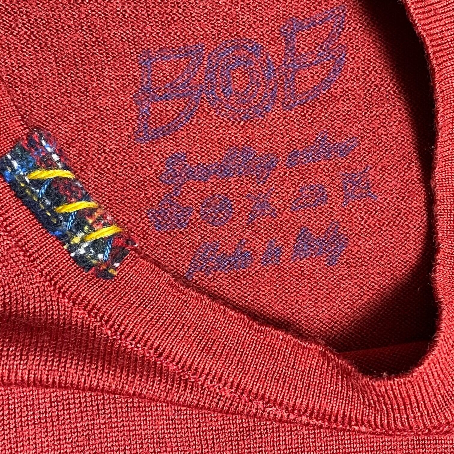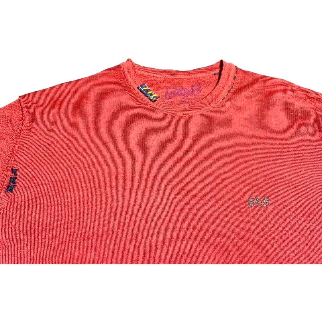 MADE IN ITALY製 BOB ダメージ加工メリノウールセーター レッド Lサイズ