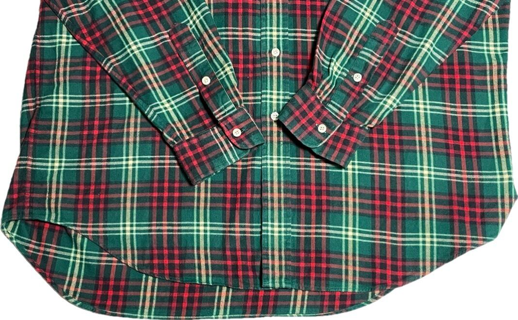 ▲訳あり商品▲ 80~90s 北マリアナ諸島製 Ralph Lauren 長袖ボタンダウンチェックシャツ グリーン×レッド Lサイズ