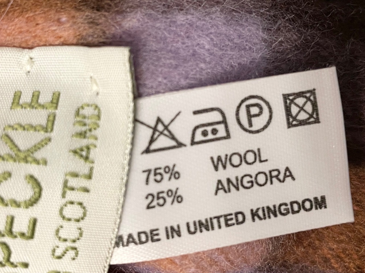MADE IN SCOTLAND製 KENSPECKLE チェック柄ウールアンゴラマフラー ブラウン×パープル